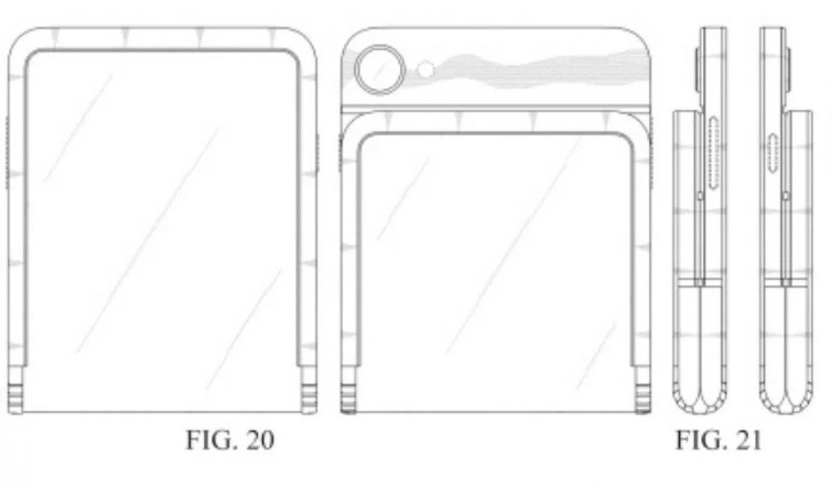 Berbeda dengan lini Galaxy Z Flip yang ada saat ini, perangkat dalam sketsa tersebut memungkinkan pengguna melipat layar ke arah dalam maupun ke arah luar.